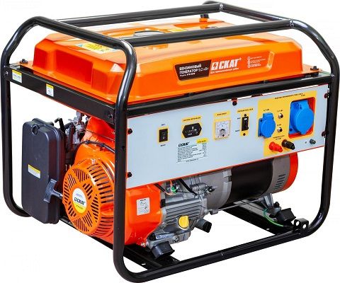 Скат УГБ-9200 — это портативный бензиновый генератор, имеет номинальную мощность 9,2 кВт при мощности двигателя 10,25 кВт. Вес установки составляет 95 кг, что делает ее отличным помощником.