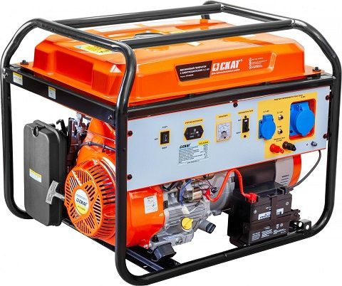 Скат УГБ-9200Е — это портативный бензиновый генератор, имеет номинальную мощность 9,2 кВт при мощности двигателя 10,55 кВт. Вес установки составляет 95 кг.