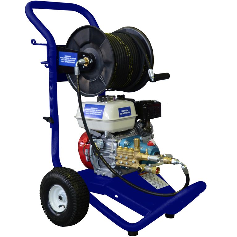 АВД ПОСЕЙДОН (Honda GX160 5,5 л.с., насос CAT (Германия) 210бар, 10л/мин, шланг прох. 6мм х 40м на барабане, 2 трубоочистные форс.)