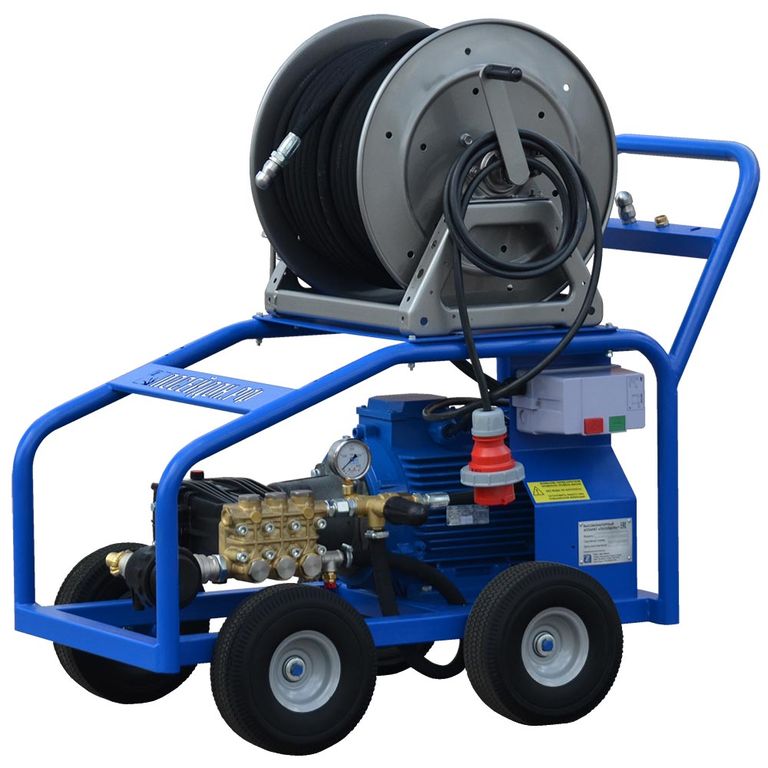 АВД Посейдон E11-120-50-Gun (ВНА-120-50-Б) - (электро 11кВт, насос UDOR (Италия) 120бар, 50л/мин, шланг прох. 12мм х 15м, пистолет, 1 форс.для поверхностей).