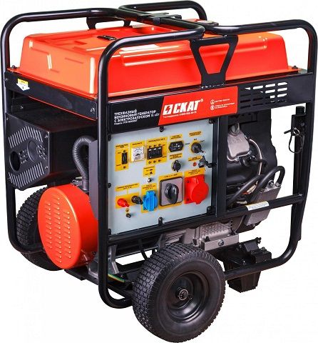 Скат УГБ-16000ЕТ — это портативный трехфазный бензиновый генератор с электрическим запуском, имеет максимальную мощность 16 кВт при мощности двигателя 19 кВт. Вес установки составляет 237,5 кг.