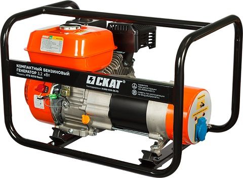 Бензиновый генератор Скат УГБ-3200 basic — это упрощенная версия данной торговой марки, имеет номинальную мощность 3,2 кВт при максимальной мощности двигателя 3,9 кВт. Вес данной установки составляет всего 42,7 кг.