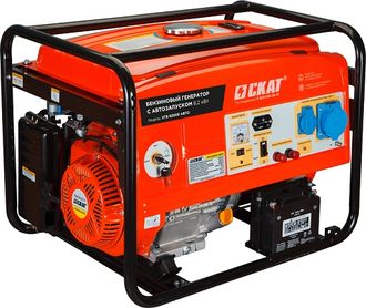 Скат УГБ-7500Е/АВТО — это портативная бензиновая электростанция с электрическим запуском и блоком АВР, имеет номинальную мощность 7,5 кВт при мощности двигателя 9,25 кВт.