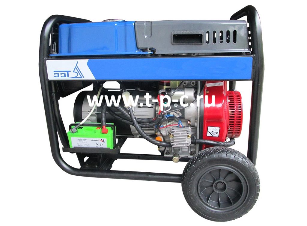 Дизель генератор TSS SDG 7000EH3A — это установка для выработки трехфазного напряжения 380В с мощностью 6,5 кВт, способна кратковременно выдавать до 7 кВт (максимальная мощность). Имеет открытое исполнение на металлической раме, и электрический тип запуска. Характерной особенностью является наличие колес и ручек для транспортировки.