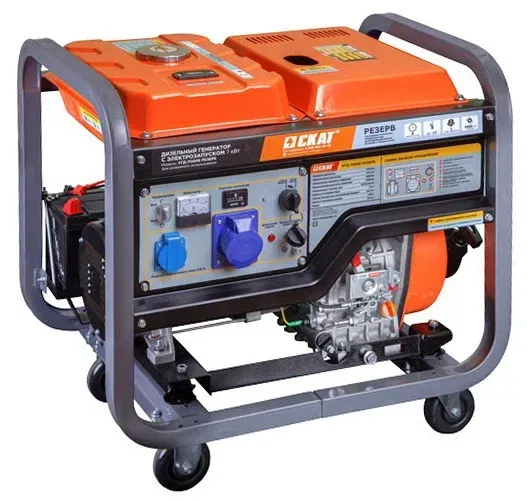 Дизельный генератор СКАТ УГД-7000E РЕЗЕРВ — это автономная электростанция номинальной мощностью 7 кВт, с возможностью непрерывной работы до 8 часов в день и температурой запуска до -15 градусов.